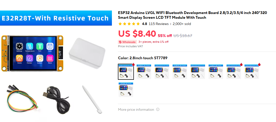 Open AliExpress stand listingB-Sense does not sell the hardware. You can also buy from other stores. The important part is this exact product type: ESP32 2.8inch touch ST7789.
